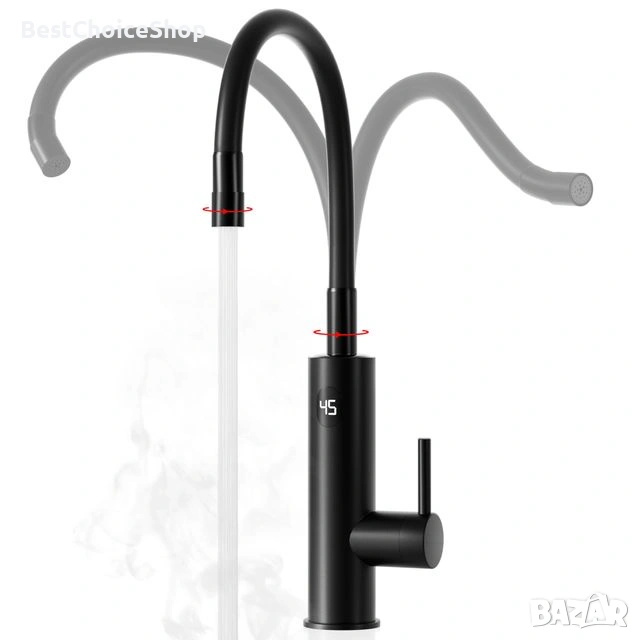 - Лесен монтаж и използване: удобен и опростен дизайн с въртяща се на 360 градуса дюза, цифров дисплей за температурата и лесно превключване между топла и студена вода за различни домакински задачи.