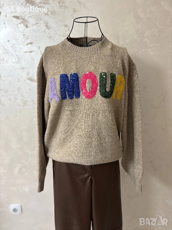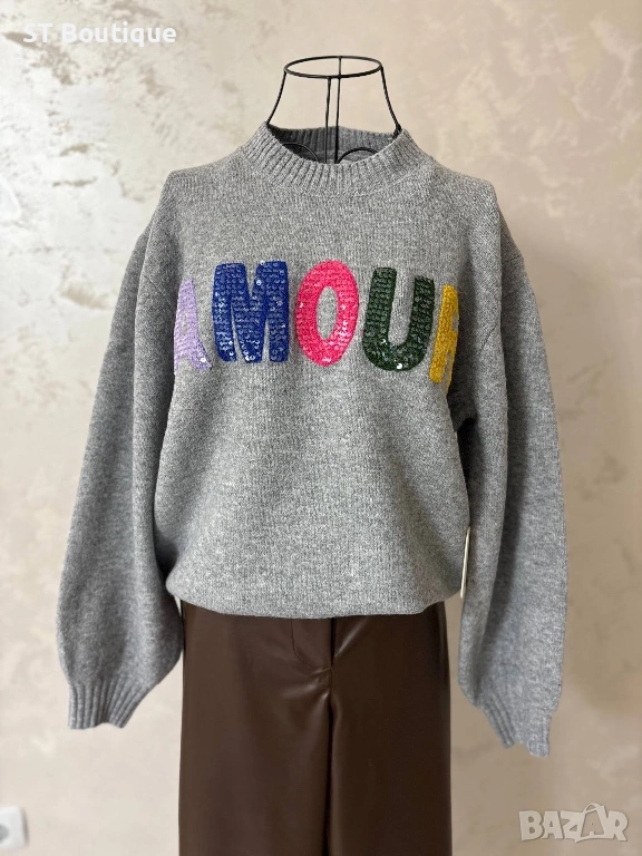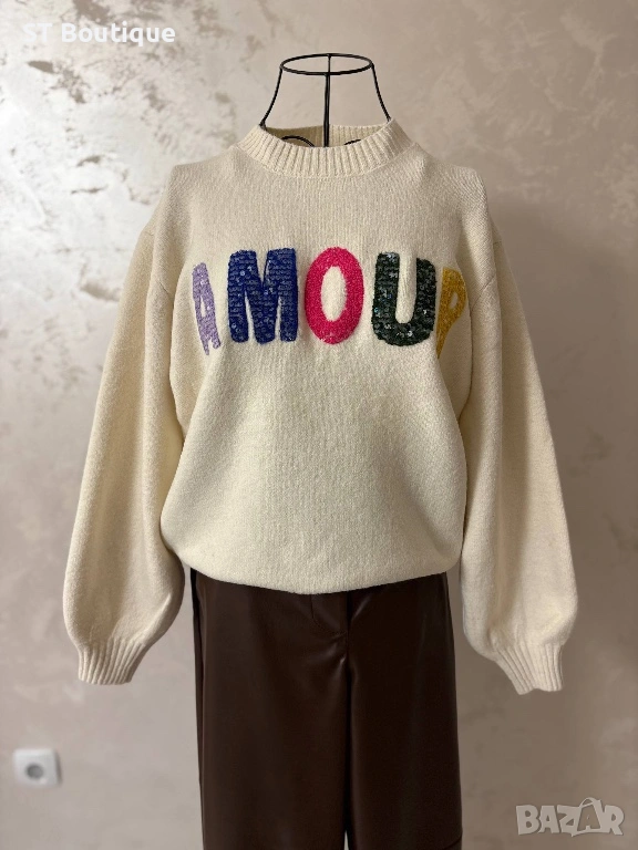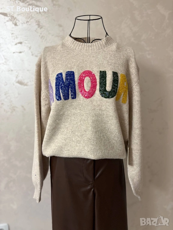 Дамски пуловер с цветен надпис, снимка 1 - Блузи с дълъг ръкав и пуловери - 53602021 Дамски пуловер с цветен надпис, снимка 2 - Блузи с дълъг ръкав и пуловери - 53602021 Дамски пуловер с цветен надпис, снимка 3 - Блузи с дълъг ръкав и пуловери - 53602021 Дамски пуловер с цветен надпис, снимка 4 - Блузи с дълъг ръкав и пуловери - 53602021 1/4