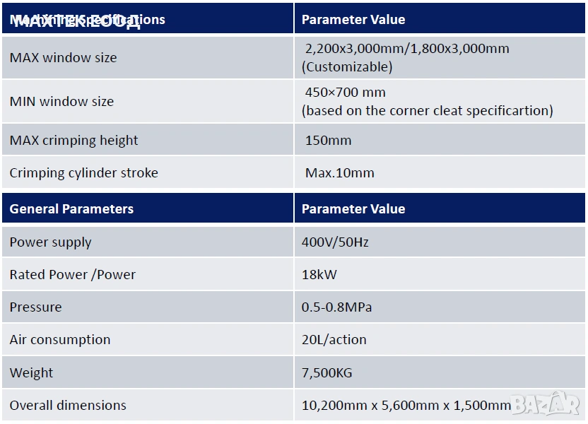Maĸcимaлeн paзмep нa paмĸa - 2200 х 3000 mm.