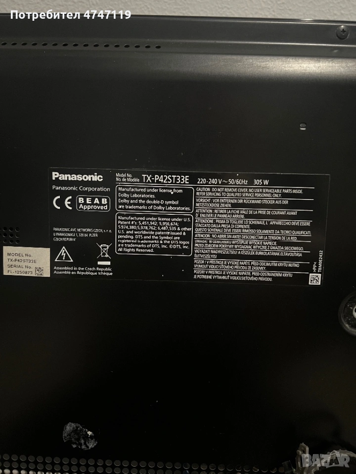 Телевизор Panasonic TX-P42ST33E 3D плазмен → Обява 53602247