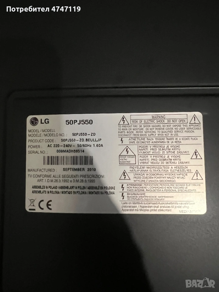 Телевизор LG 50PJ550 Плазмен → Обява 53602357