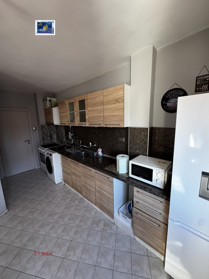 Апартаментът е напълно обзаведен и в отлично състояние. Разполага с всички необходими удобства за нанасяне веднага - климатик, готварска печка, хладилник, пералня, телевизор и др. Интериорът е светъл и уютен, с просторни помещения и функционално разпределение.
