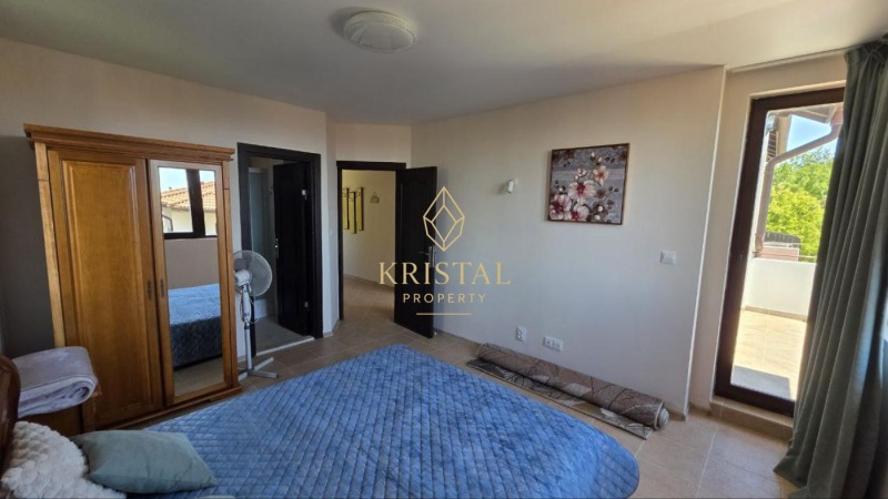 Вилна зона. Спокоен район. Селото е с добре развита инфраструктура. Удобства в комплекса: басейн; лятна градина; детска площадка; паркинг; охрана. Разпределение: входно антре, просторна всекидневна с кухня и трапезария, две спални, две бани, складово помещение, балкон и тераса с невероятна панорамна гледка към морето. Апартаментът се продава обзаведен и оборудван, готов за нанасяне - завършени са висококачествени ремонти, всичко е в отлично състояние. Идеален както за лично ползване, така и за отдаване под наем. Акт 16