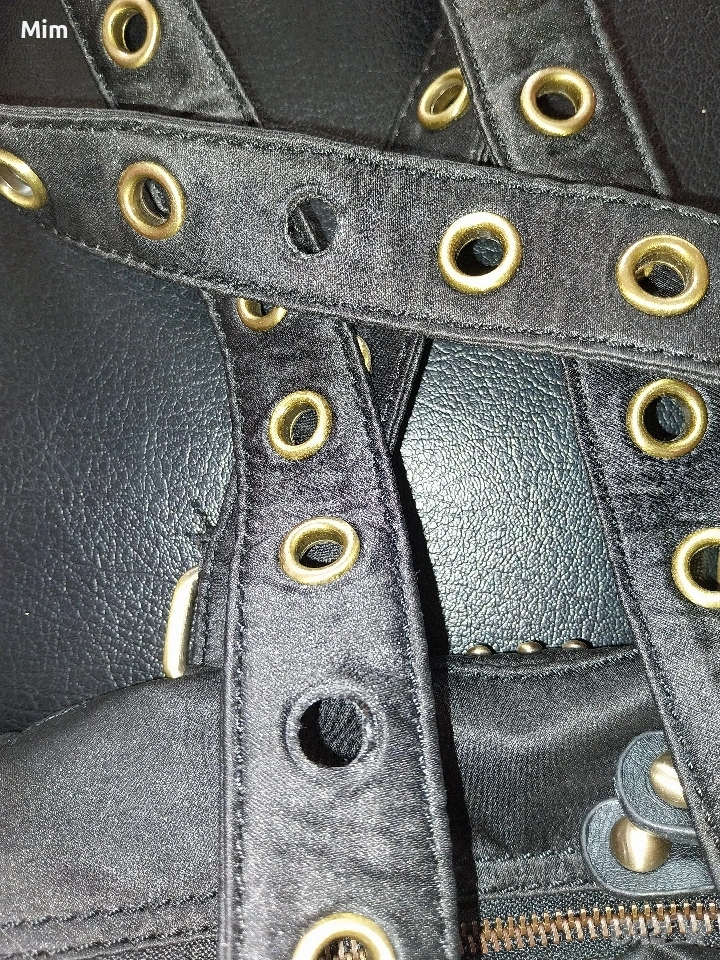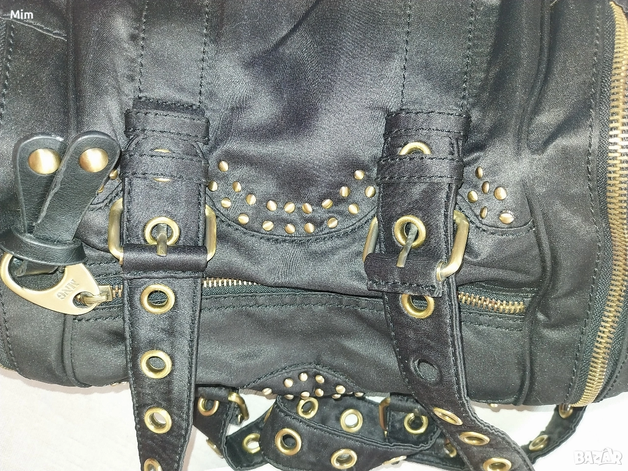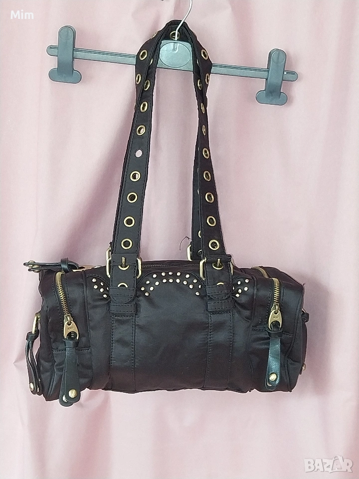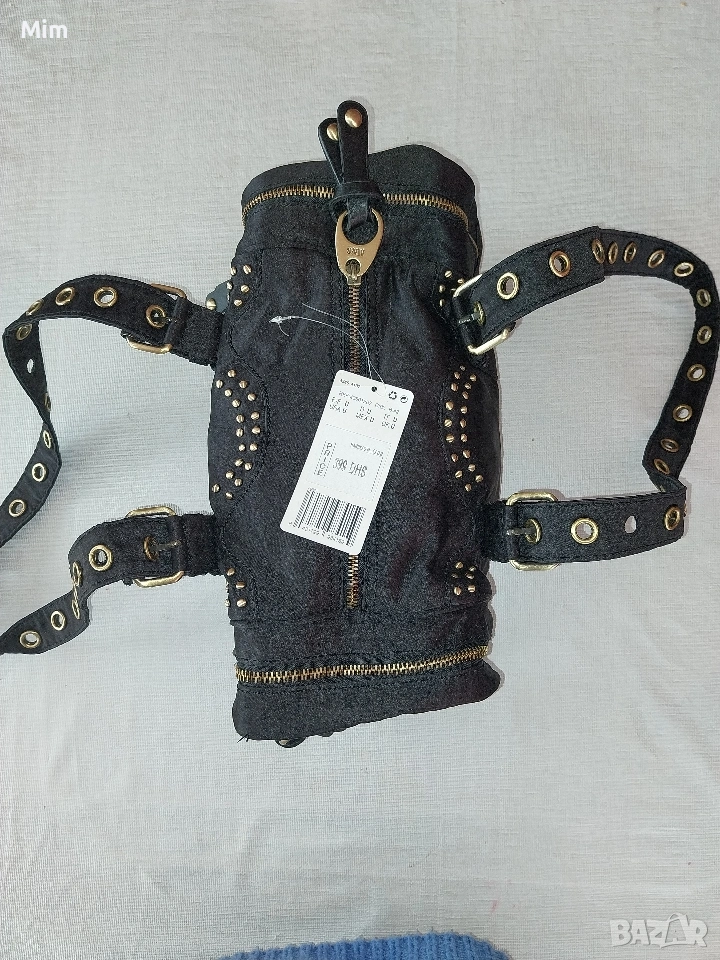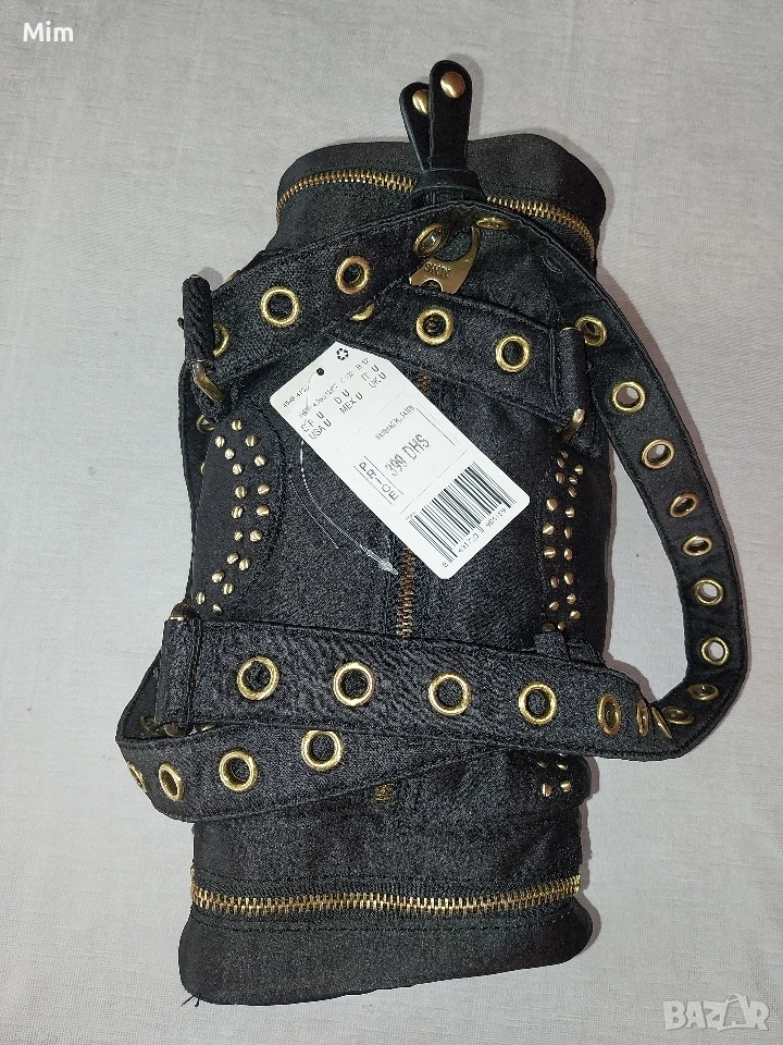 Черна дамска чанта от сатенен плат с капси с дръжки който се регулират ,дължина 33 см дълбочина 15 см широчина 15 см ,дължина на дръжката 72 см с много джобове, на дръжките липсват две капси на последната снимка са показани в преден план ,съобразно с цената. Нова с хартиен носител.