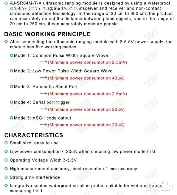 Ултразвуков сензор за разстояние / Дълбокомер SR04M-2, снимка 1 - Друга електроника - 53602532 Ултразвуков сензор за разстояние / Дълбокомер SR04M-2, снимка 2 - Друга електроника - 53602532 Ултразвуков сензор за разстояние / Дълбокомер SR04M-2, снимка 3 - Друга електроника - 53602532 Ултразвуков сензор за разстояние / Дълбокомер SR04M-2, снимка 4 - Друга електроника - 53602532 1/4
