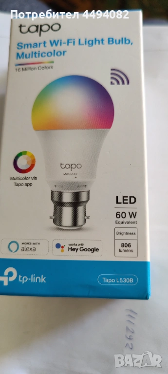 Продукта е чисто нов и е отварян за да го тествам. Купих го с идеята да го ползвам но не става за моята лампа. Това е модерна крушка за осветление,която може да се използва с amazon alexa или с мобилното приложение на Tp-link. Както се казва прибираш се от работа и с едно цъкане от смартфона си пускаш осветлението в дома. Изпращам със Спиди.