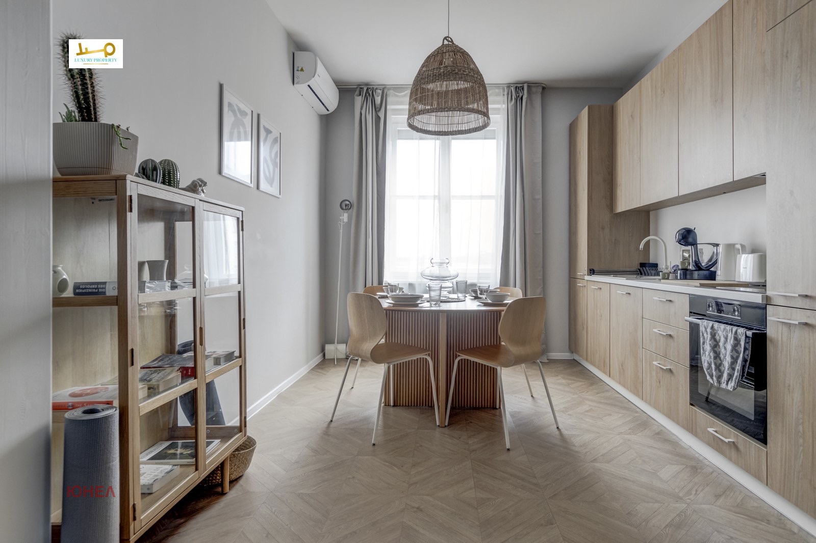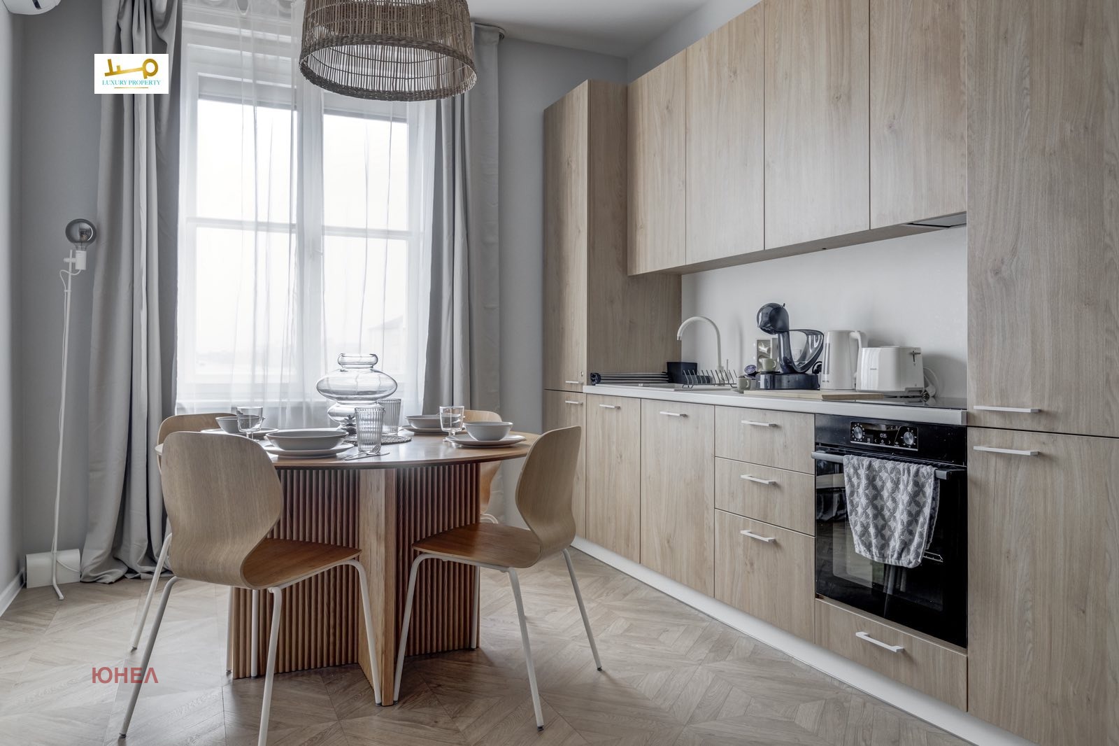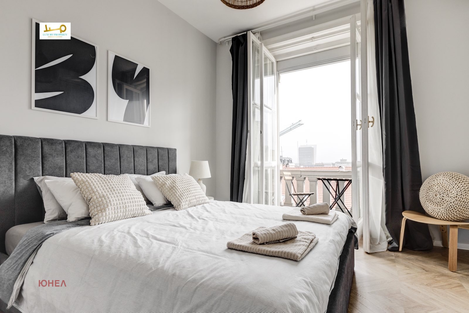 Агенция за недвижими имоти Luxury Property/ Unel има удоволствието да Ви представи луксозно обзаведен апартамент под наем в идеалния център. Намира се в сграда с асансьор и добре поддържан вход на бул. 'Дондуков'и ул.,Бачо Киро'. Апартаментът се състои от: входно антре, хол с трапезария и кухненски бокс, две самостоятелни спални, баня с тоалетна и панорамна тераса. Имотът е качествено ремонтиран с италиански паркет и мебели, обзаведен и оборудван с всички необходими ел. уреди, включително пералня и съдомиялна, и всичко необходимо за едно домакинство както и пълен комплект домакински и спални принадлежности.