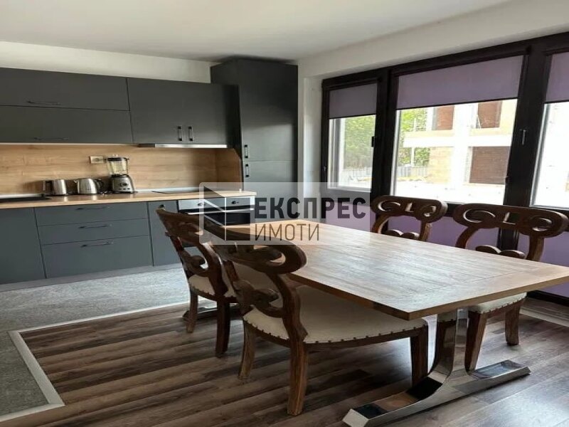 Експрес имоти предлага обзаведен двустаен апартамент с югоизточно изложение, състоящ се от кухненски бокс, трепезарна част и всекидневна, отделна спалня. Топла вода от бойлер. Локално отопление с термопомпа. Oбзаведен с нови мебели - кухненски шкафове, маса, столове, диван, секции, спалня и гардероб.
