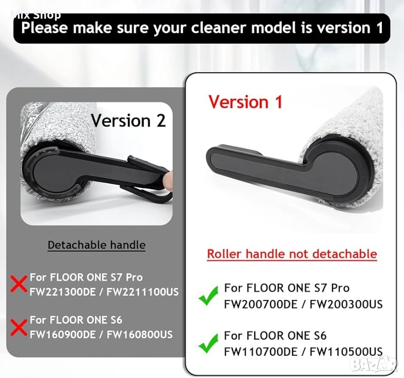 Съвместими модели: висококачествен аксесоар за ролкова четка за прахосмукачка за мокро и сухо почистване Tineco Floor One S7 PRO / S6 (версия 1), (моля, проверете номера на модела си преди покупка, не е съвместим с Tineco One S7)