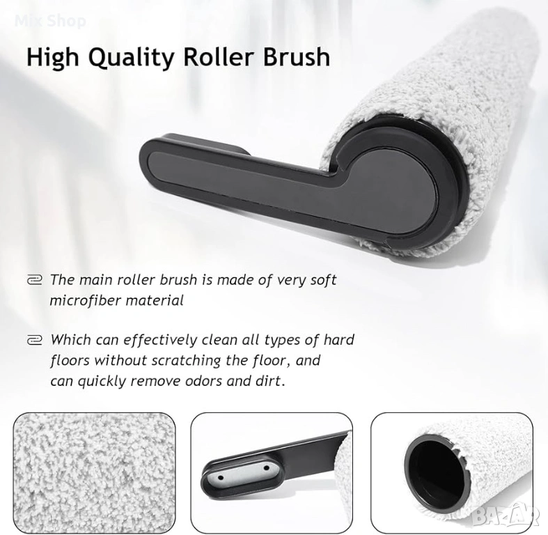 Чисто нова, висококачествена ролкова четка - Основната ролкова четка е изработена от много мек микрофибърен материал, който може ефективно да почиства всички видове твърди подове, без да ги надраска, и бързо да премахва миризми и замърсявания. Осигурява чиста среда.