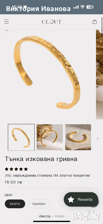 Позлатена гривна в луксозна подаръчна опаковка → Обява 53603205
