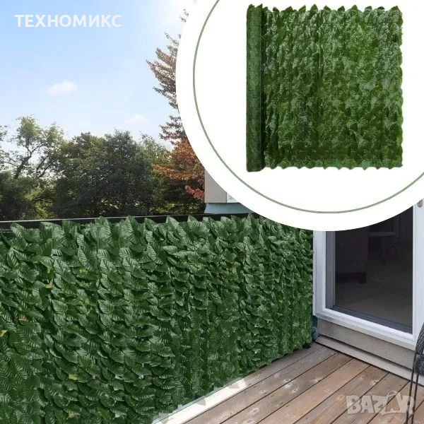 Ограда от зелени листа - панел за уединение с реалистичен вид 3 x 0,5м → Обява 53603762