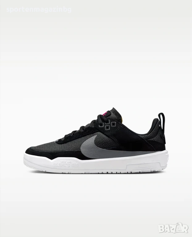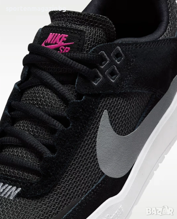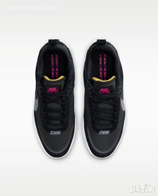 Горна част от дишащата мрежа осигурява правилна вентилация на краката, което гарантира постоянно усещане за свежест и комфорт а допълнителните велурени наслагвания увеличават здравината на кецовете. Здравите велурени наслагвания се разтягат лесно, за да ви осигурят онова усещане и плъзгане, които обичате. Мрежестата материя добавя дишане, така че никога няма да се налага да прекратявате пързалянето си преждевременно заради прегряване на краката. Допълнително подсилени в областта на петата и пръстите. Swoosh лого Nike от двете страни, лого с надпис върху езика и лого в задната част. Нисък профил за по-голяма свобода при движение. Вътрешната текстилна част заедно с изключително омекотената стелка осигуряват невероятна мекота и комфорт с всяка крачка. Въздушната система Snappy Zoom Air осигурява допълнително омекотяване на петата, за да ви осигури комфорт, от който се нуждаете, за да карате и пързаляне през целия ден. Гъвкавата междинна подметка подкрепя стъпалата при движение и намалява сътресението, придава лекота и еластичност на обувката и осигурява правилното позициониране на краката по време на движение. От Nike знаят колко е важно да усещате дъската под краката си – това ви помага да я контролирате. Колкото по-лека и гъвкава е обувката, толкова по-добро е усещането за нея. Имайки това предвид, е извадена колкото се може повече излишна пяна от тези обувки, за да се намали общото им тегло и да се увеличи гъвкавостта им. Каучуковата външна подметка със специална шарка добавя сцепление и издръжливост.
