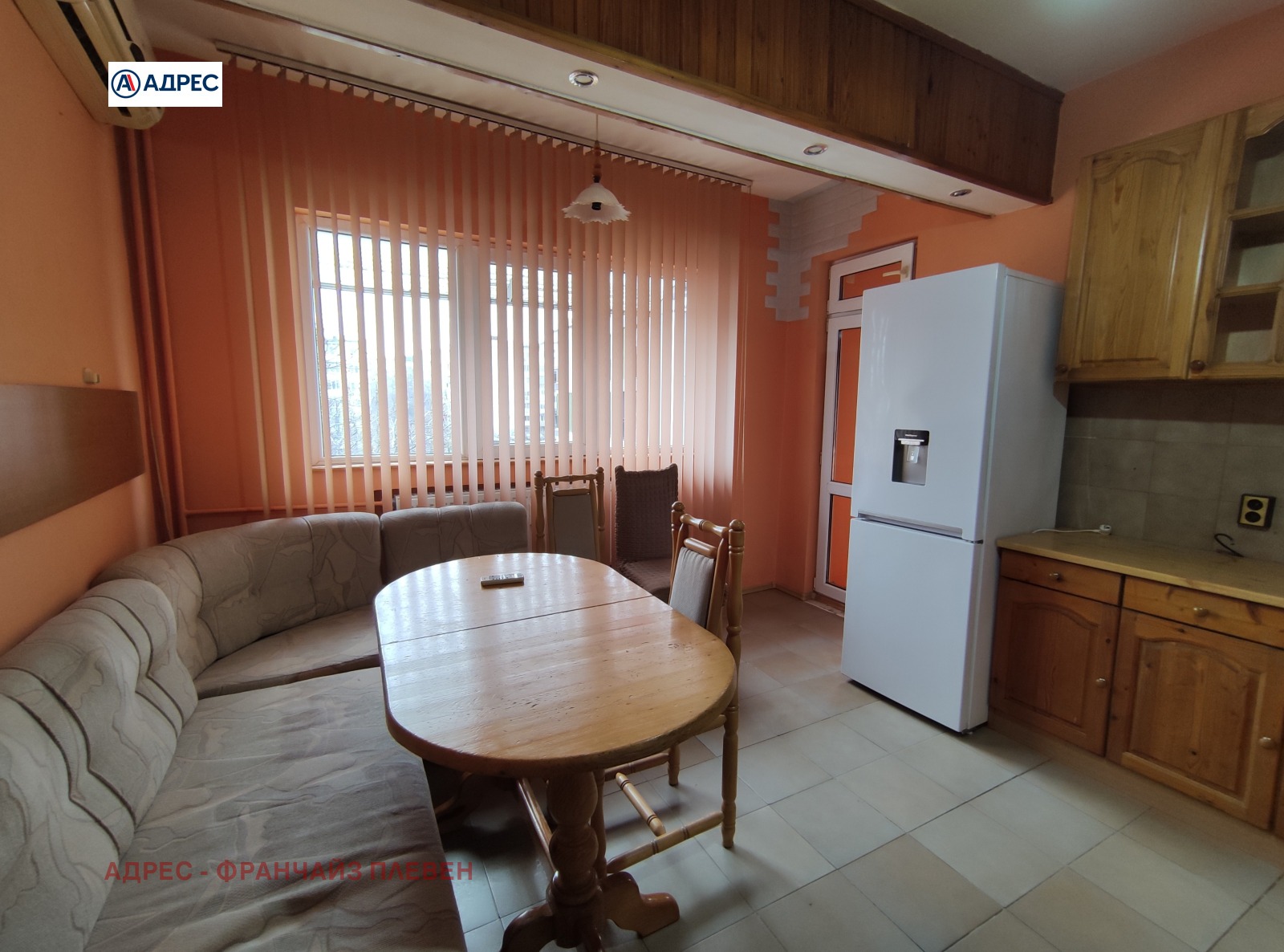 Агенция ''Адрес'' недвижими имоти -гр.Плевен предлага двустаен апартамент под наем. Жилището е обособено с две спални, разширена кухня, баня и отделно тоалетна, две тераси. Отопление ТЕЦ, климатик в кухнята. Отдава се дългосрочно