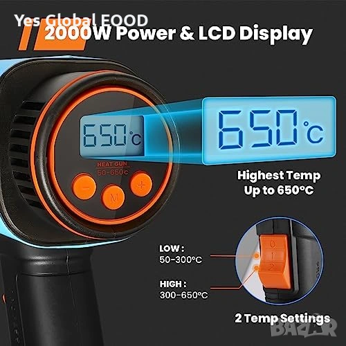 GoGonova 2000W пистолет горещ въздух LCD 650°C
