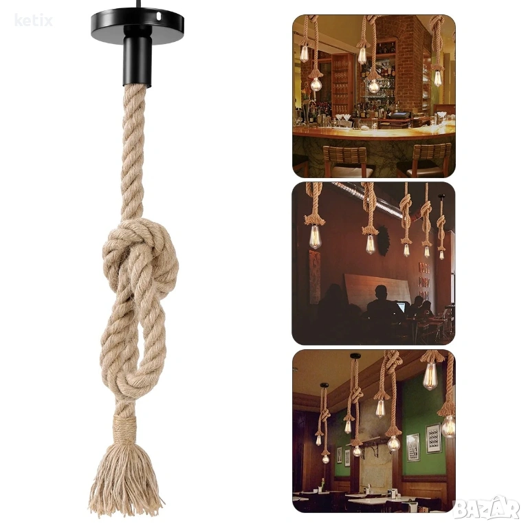- Изработена от материал, висящата лампа от коноп е издръжлива и дълготрайна.