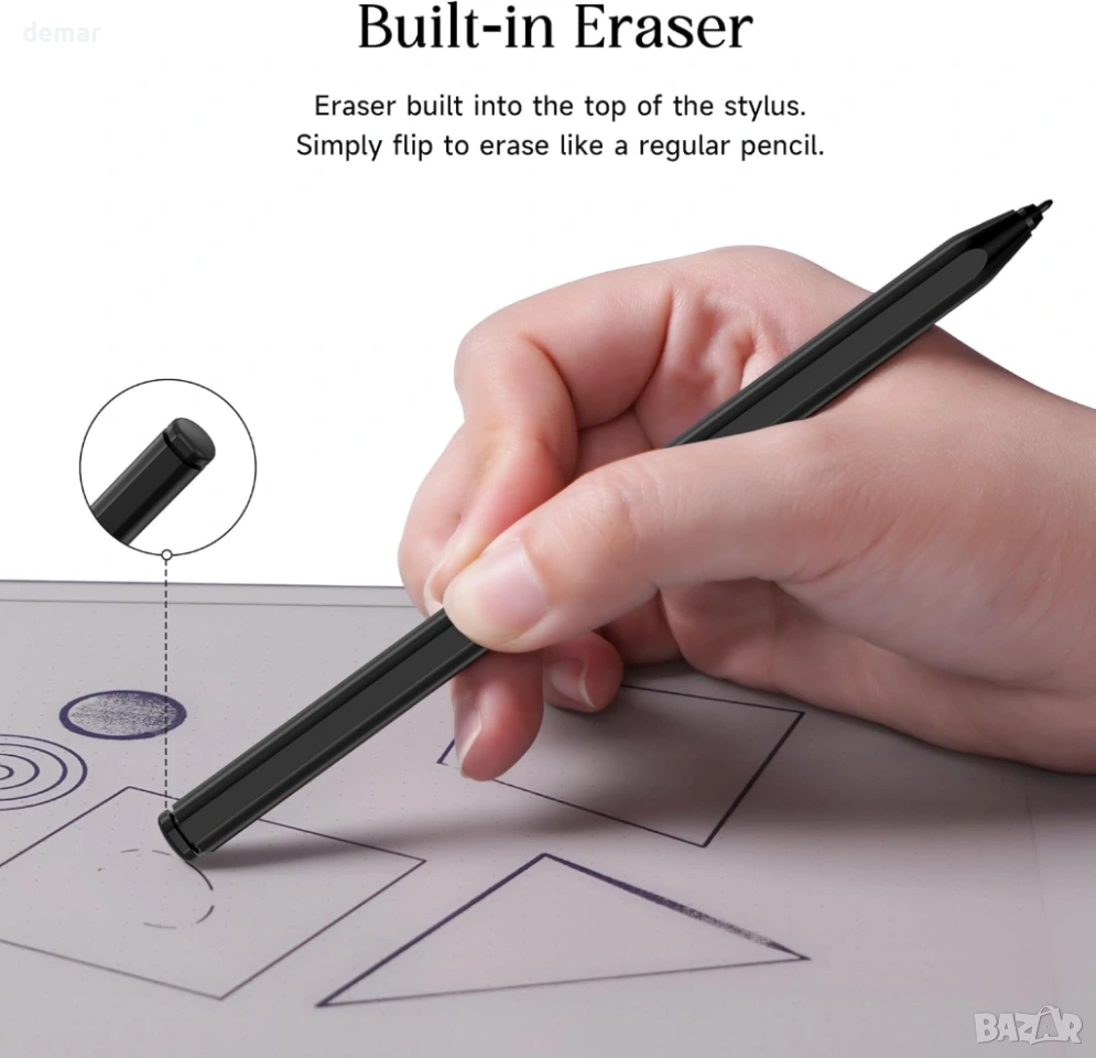 Стилус за Remarkable 2, EMR молив с гумичка, ниво на натиск 4096, отхвърляне на дланта