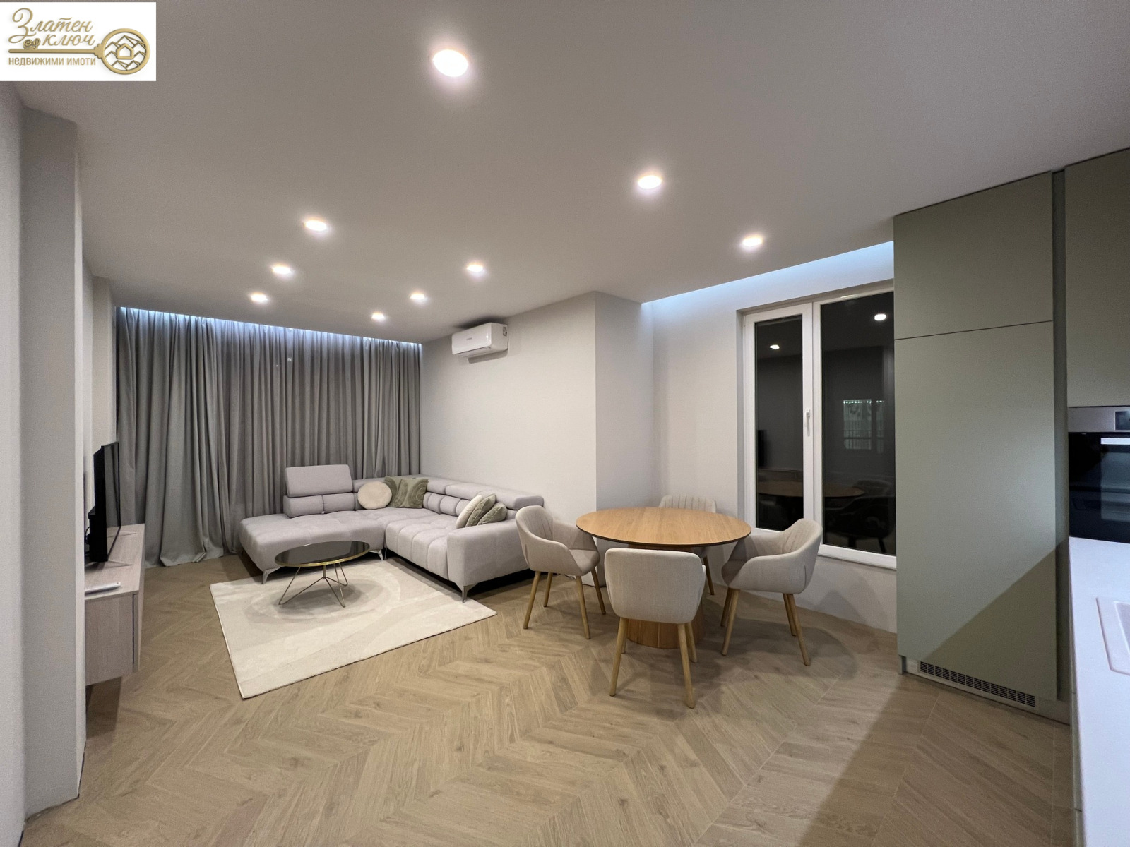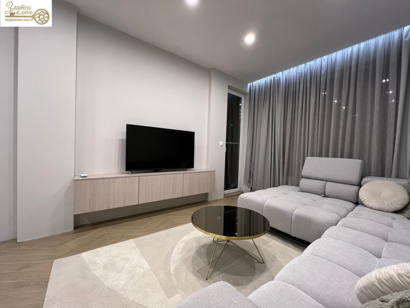 'ЗЛАТЕН КЛЮЧ-НЕДВИЖИМИ ИМОТИ' предлага под наем НОВ ДВУСТАЕН АПАРТАМЕНТ ЗА ПЪРВИ НАЕМАТЕЛИ! ВКЛЮЧЕНИ В НАЕМА: ВЪНШНО ПАРКОМЯСТО И ТАКСА ЗА ПОДДРЪЖКА! Намира се в новоизградения комплекс Магнолия 4/ ул.Рая/. Жилището е стилно завършено с висококачествени материали, напълно обзаведено с нови мебели и електроуреди в гаранция/ марки- Miele, AEG, Bosch, Electrolux, Whirlpool; диван марка Plaza L/. Представлява дневна с кухненски бокс и трапезария, спалня, баня с тоалетна, входно антре и тераса. Изложение: юг/запад. В апартаментът не се допускат домашни любимци.