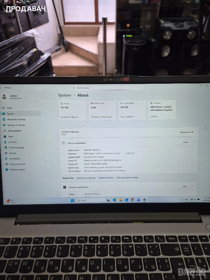 64 битова оперативна система. Windows 11 home. 512GB SSD и 16GB RAM. С зарядно .Изпращаме с опция преглед и тест за цялата страна.