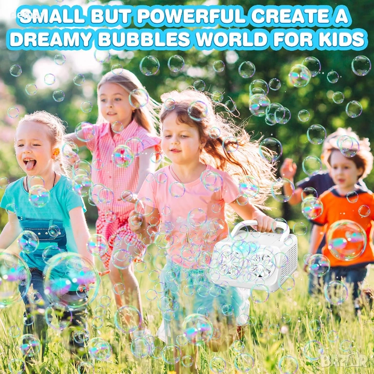 Машина за балончета - 22000+ балончета в минута, захранвана от USB или батерии, бяла