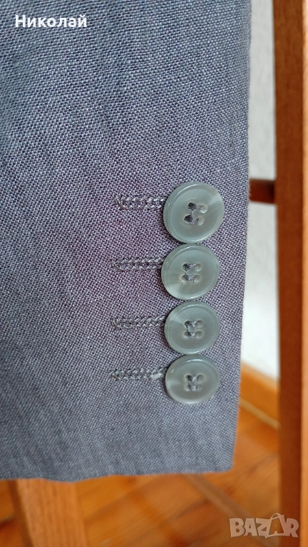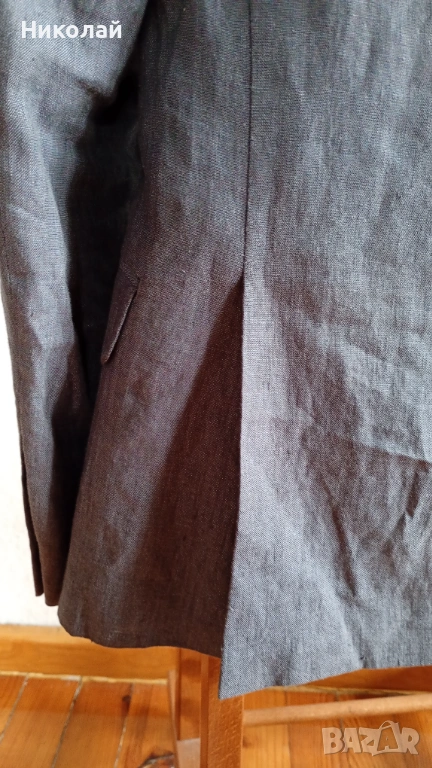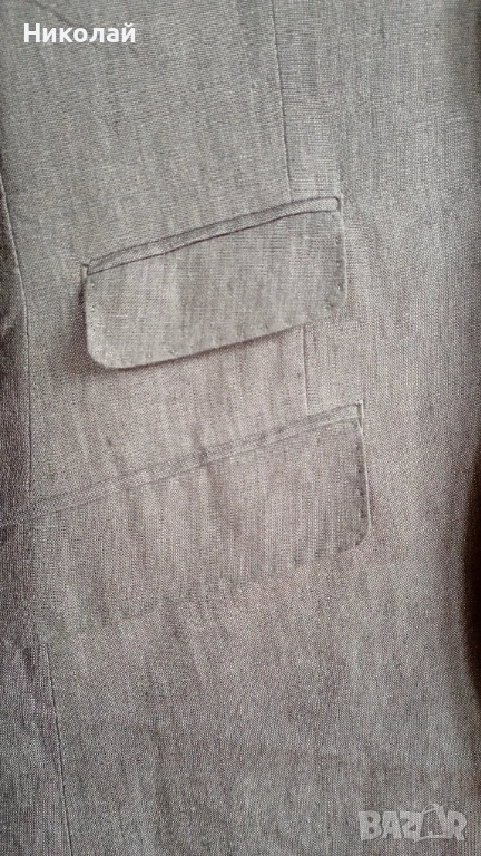 Продавам класически втален костюм от 100% лен, размер 46, цвят сив.