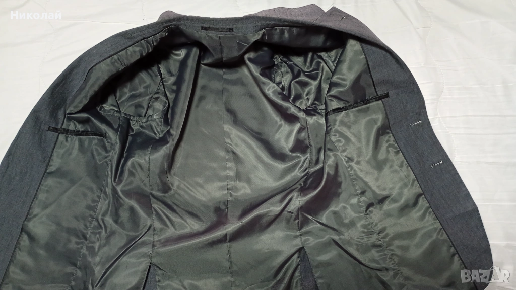 Костюмът е обличан само веднъж за няколко часа и е в състояние неразличимо от ново, без абсолютно никакви забележки и следи от носене. Джобовете са все още зашити.
