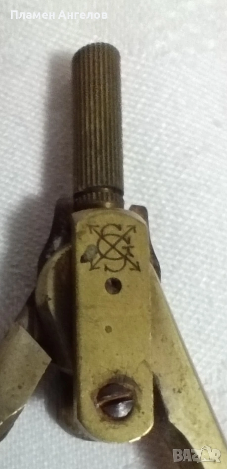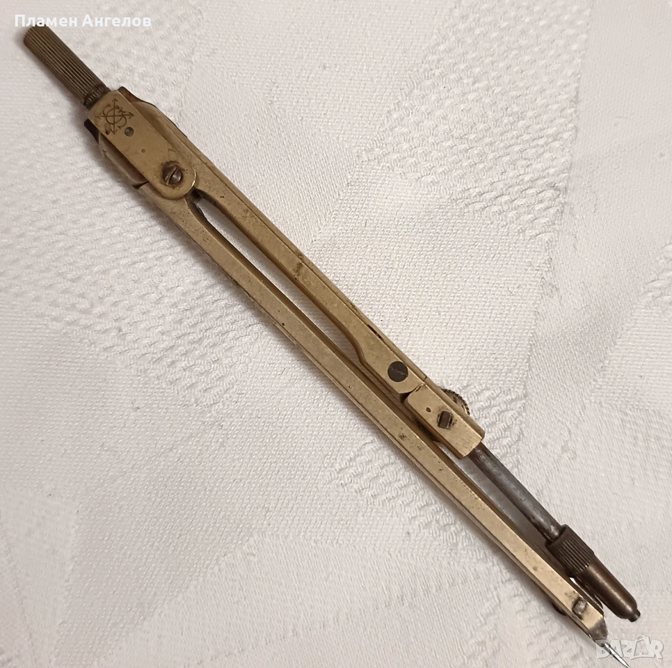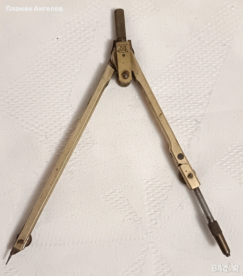 Антикварен пергел от месинг или бронз от американската компания Smith & Grosby - Атълбъро, щата Масачузетс. Произведен в периода от 1880 до 1910 година.. Бронзовите инструменти и Маркировката Smith & Grosby са рядко срещани от масовите марки, като Rihter и други. Затова тази марка предизвиква интерес от колекционери. Запазен, в отлично състояние без повреди, без подменени части, колелца.