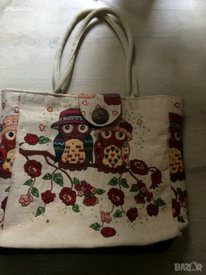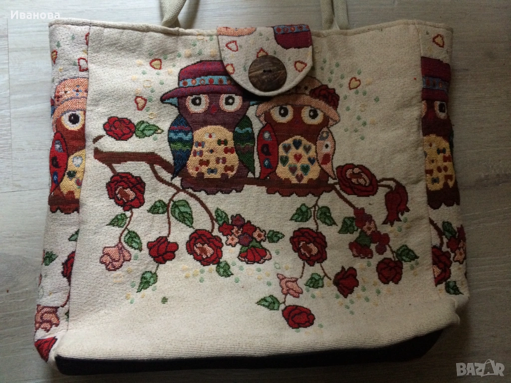 Голяма платняна чанта със совички., снимка 1 - Чанти - 53605387 Голяма платняна чанта със совички., снимка 2 - Чанти - 53605387 Голяма платняна чанта със совички., снимка 3 - Чанти - 53605387 Голяма платняна чанта със совички., снимка 4 - Чанти - 53605387 1/4