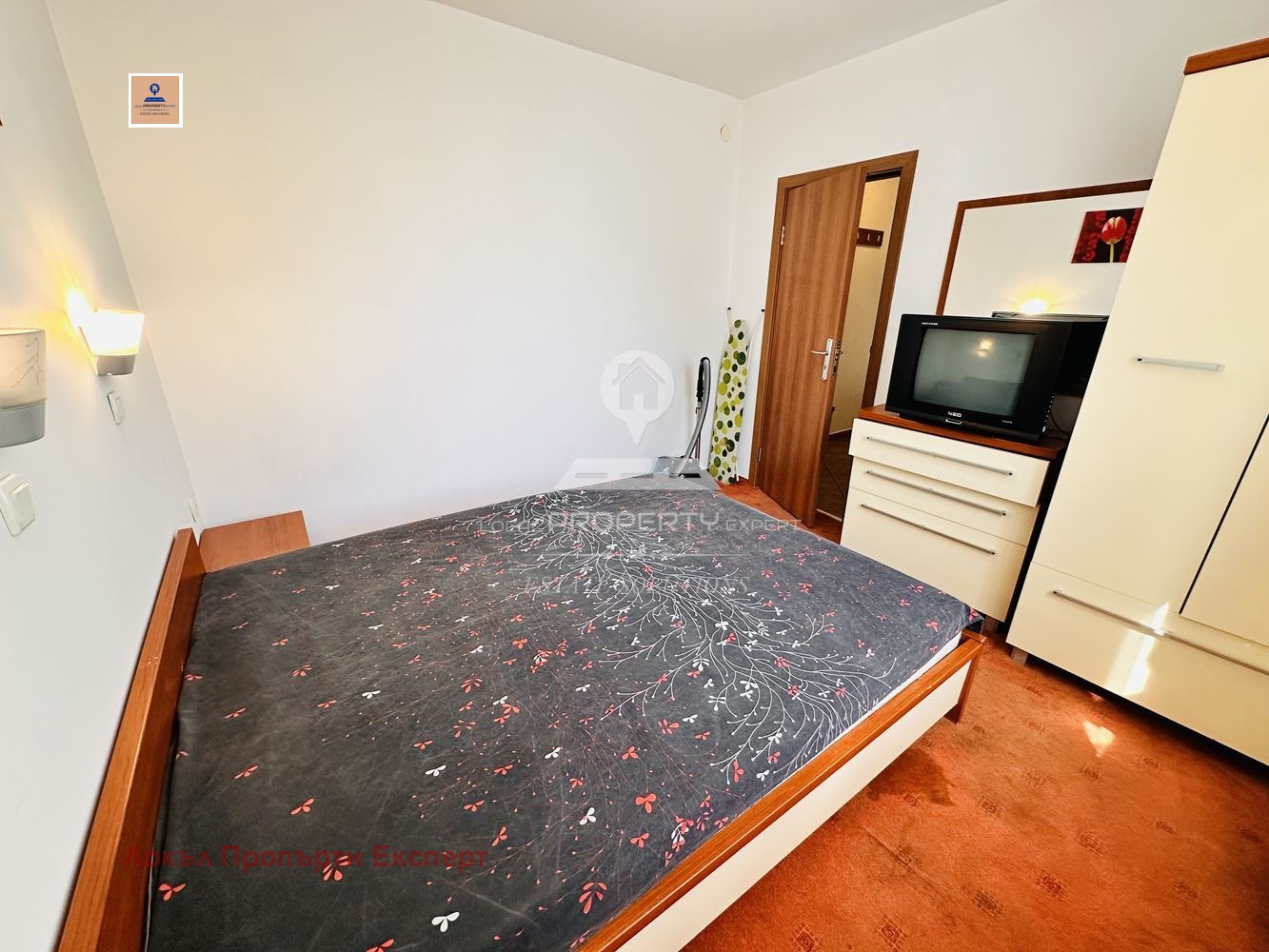 Спалнята е обзаведена с двойно легло, две нощни шкафчета, двукрилен гардероб, скрин и телевизор.
