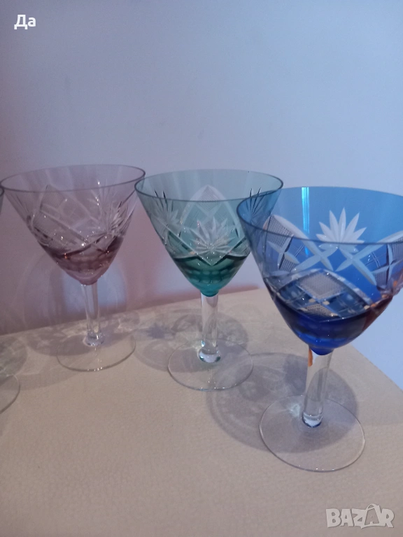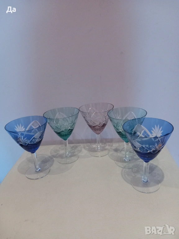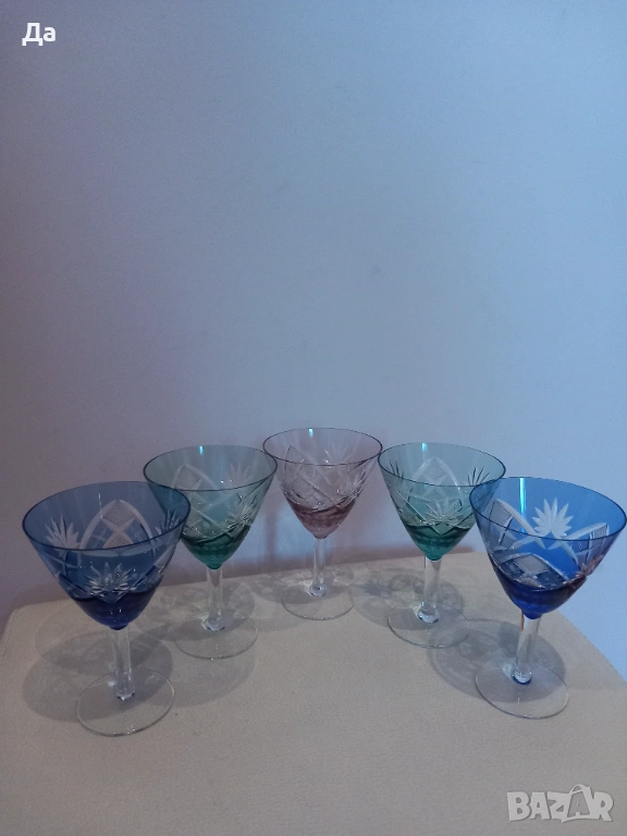 Немски цветен кристал,отлични чаши за мартини,ликьор.Налични 5 бр