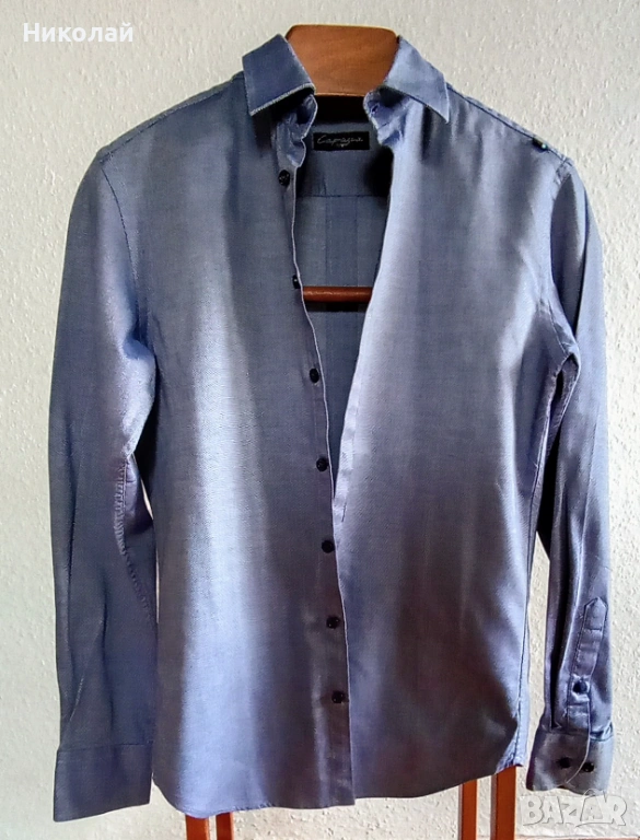 Продавам класическа вталена риза на Capasca от 100% памук, размер S, цвят син.