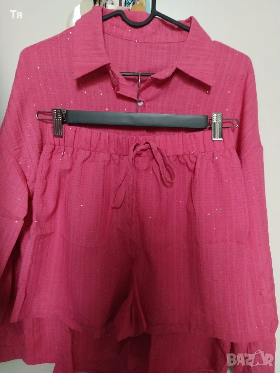Нов розов дамски комплект размер 36(S). С блестящи частици.