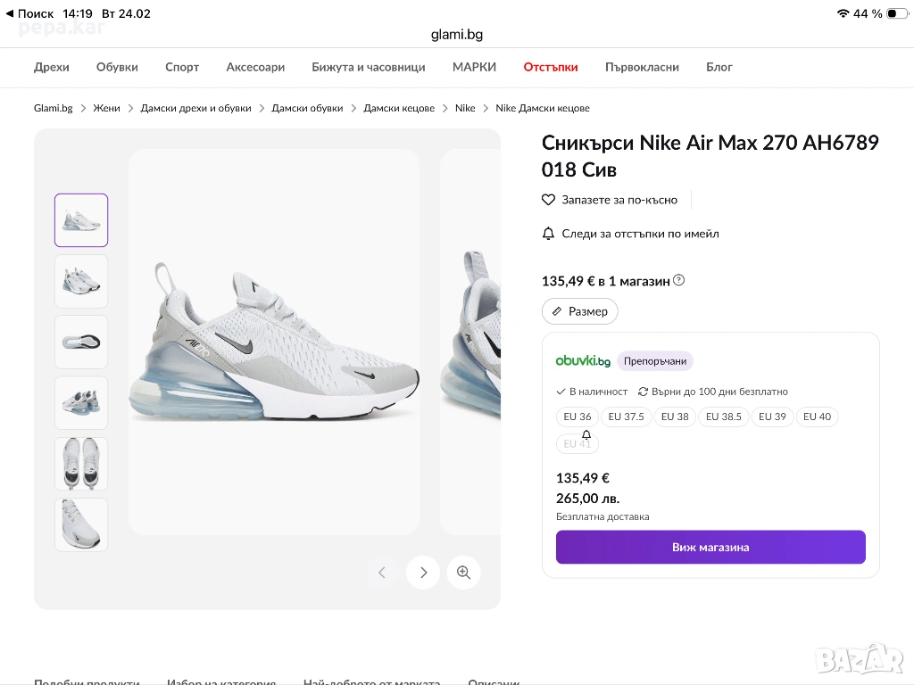 Сникърси Nike Air Max 270 AH6789 №36 и №38 → Обява 53605788