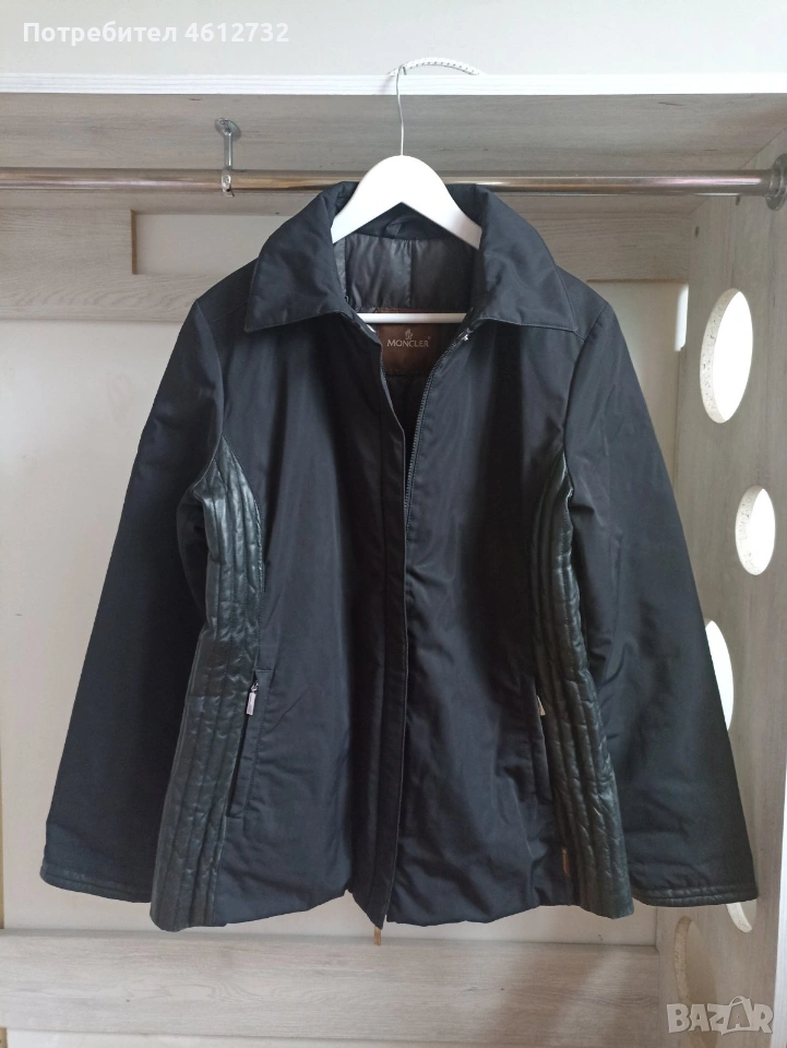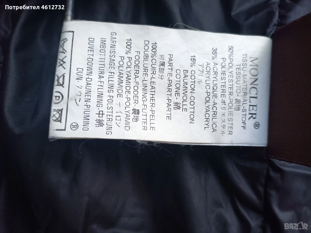 Оригинално яке Moncler.Пух и пера.Естествена кожа в странична част.Леко втален модел.Памук,полиестер.С премахната пухена яка.