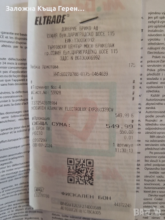 Мобилен Климатик Electrolux EXP26U558HW 9000BTU
