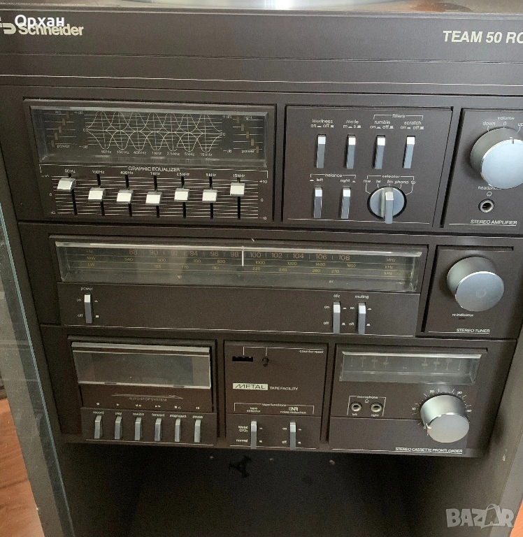 Здравейте, предлагам стерео система Schneider Team 50 RC De Luxe с грамофон и касетофон. Това е истинска колекционерска вещ за любителите на музиката!