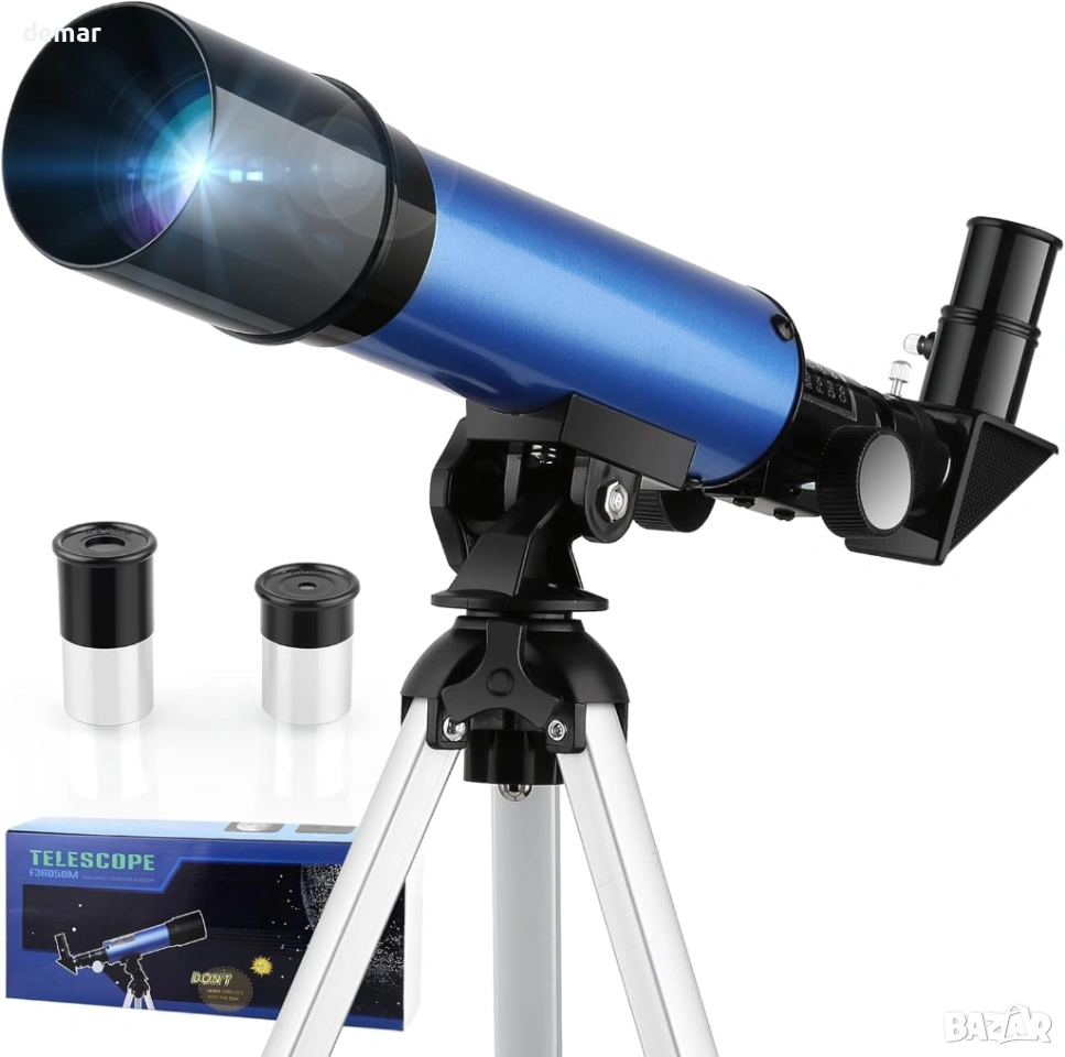 Детски телескоп Cowiewie за начинаещи и деца, рефрактор с апертура 50 мм, статив, 2 окуляра