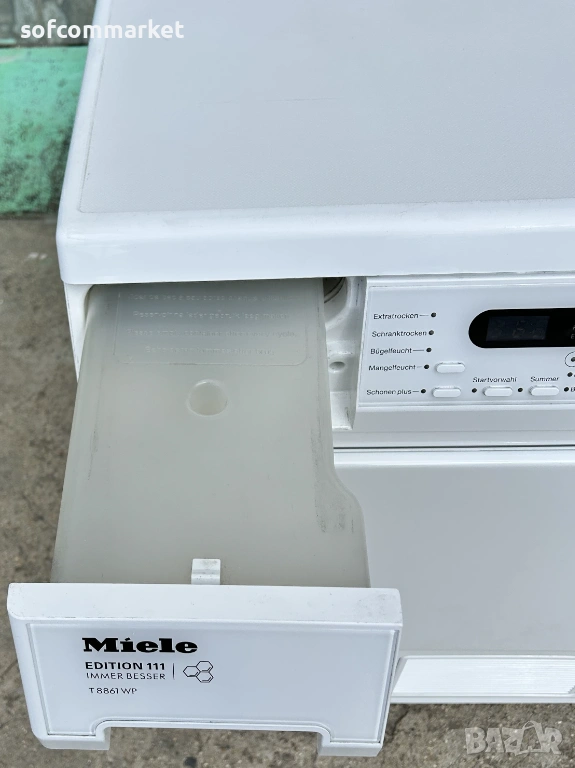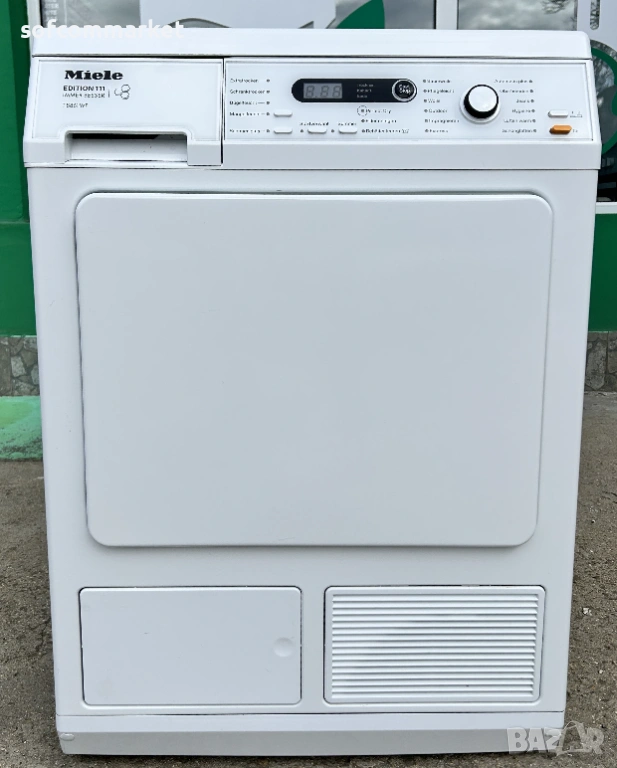 Miele T 8861 WP Edition 111 е високоефективна кондензна сушилня с термопомпа, проектирана за капацитет до 8 кг пране. Моделът е част от юбилейната серия "Edition 111" на Miele и се отличава с патентования барабан "пчелна пита", който осигурява изключително нежна грижа за тъканите. Сушилнята е втора употреба, внос от Германия и я предлагаме с 12 месеца гаранция!