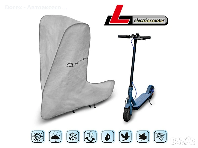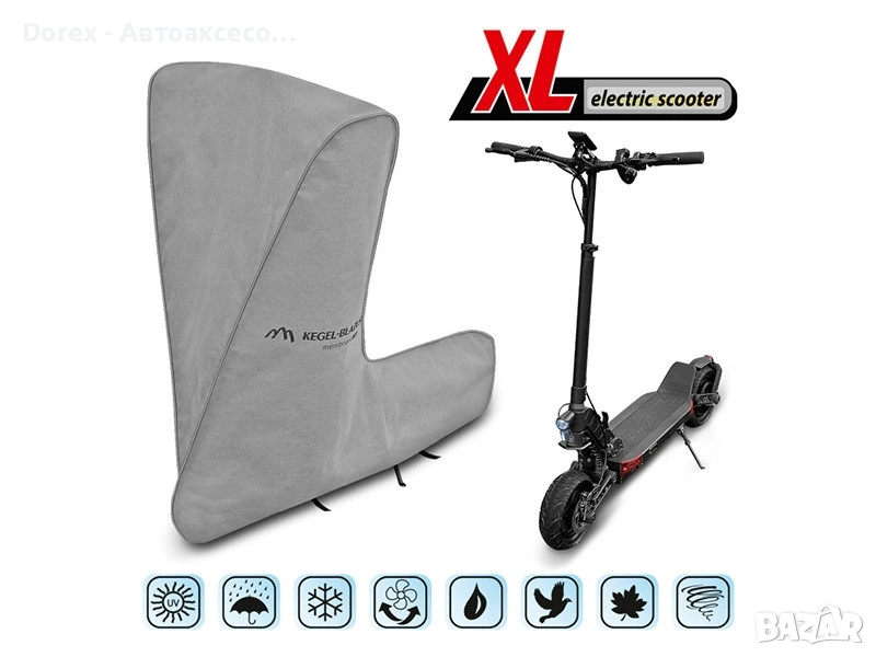 Висококачествено покривало Kegel, специално проектирано за електрически тротинетки. Осигурява защита при всякакви атмосферни условия – сняг, дъжд, вятър, замръзване, листа, дървесен сок, UV лъчи, птици и прах.