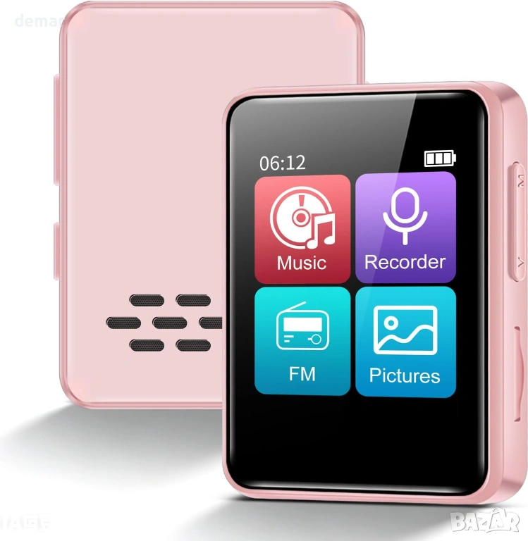 MP3 плейър с Bluetooth, 1.8" музикален плейър с тъчскрийн, 32GB карта, слушалки, розов