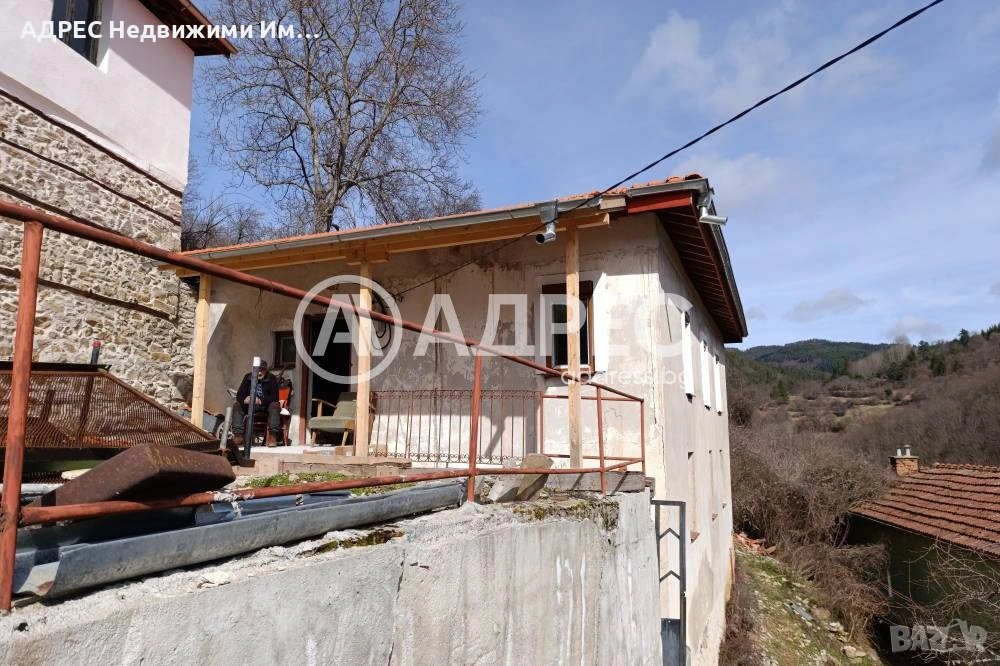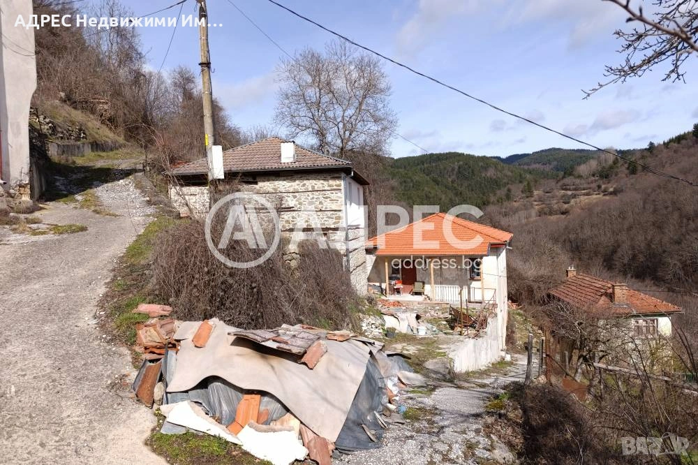 Масивна двуетажна родопска къща с панорама, със застроена площ от 70 кв.м и свободно дворно място от 200 кв.м. Започнат е основен ремонт, като покривната конструкция е обновена с нови греди и дървена обшивка. Поставена е нова дограма и нов гредоред, а банята с тоалетната е напълно готова.