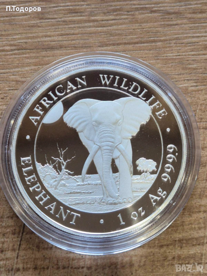 Здравейте, предлагам монета Сребро 1 oz Слон 2025 - Сомалия
