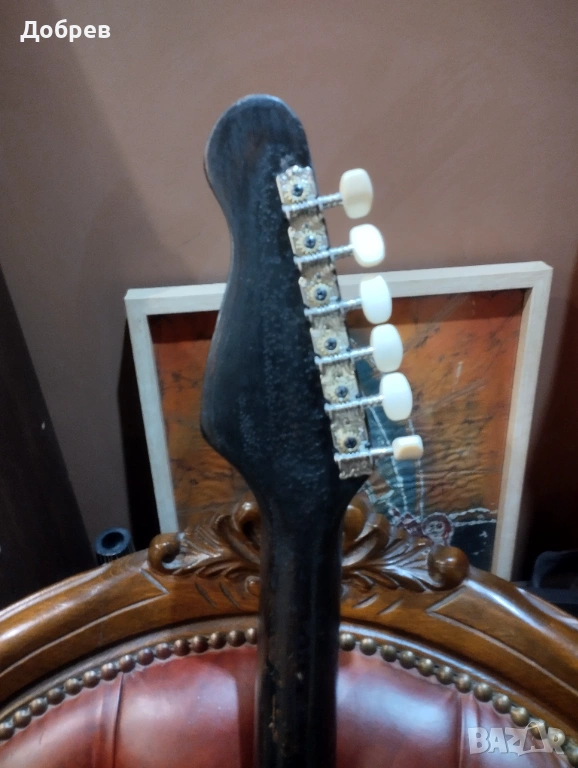 Без намеси с изключение на нови ключове, тъй като старите бяха счупени. Със следи от употреба, но няма счупено и спукано, работеща. Монтирани нови струни- десятки.