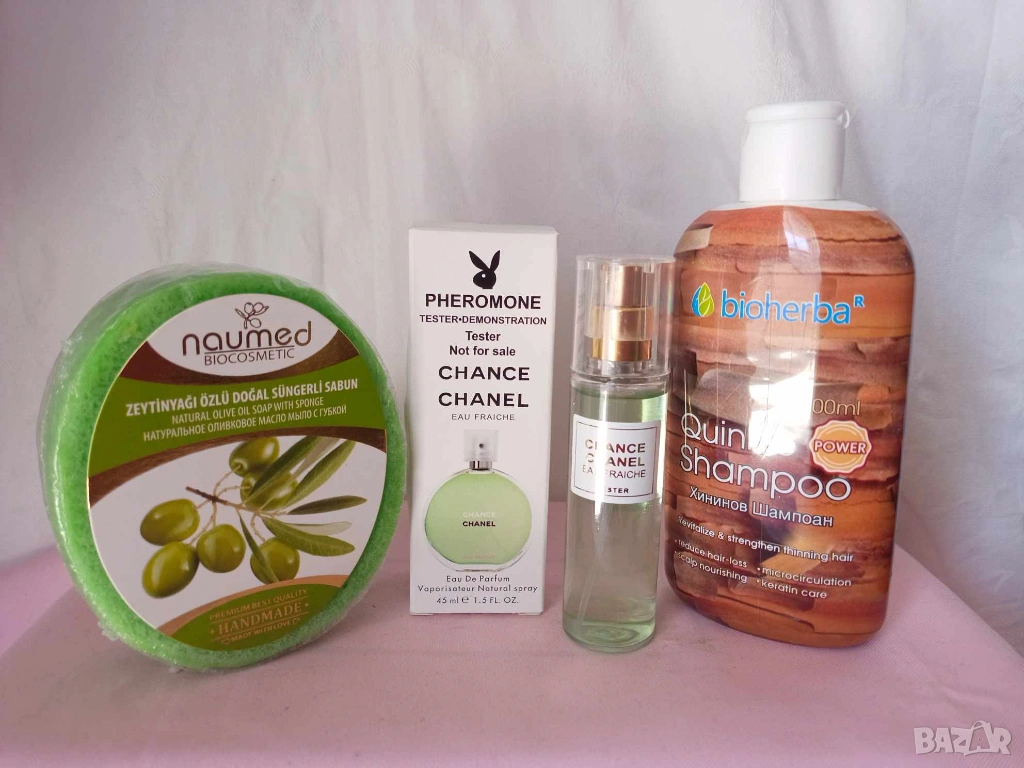 Промо комплект 933-ароматен сапун 135 гр.,шампоан и мини парфюм Chance Chanel → Обява 53606771