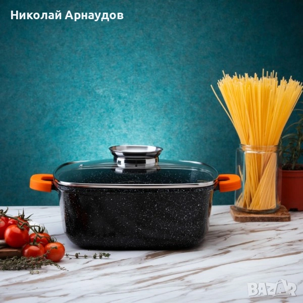 Висококачествена и издръжлива квадратна тенджера от лят алуминий.