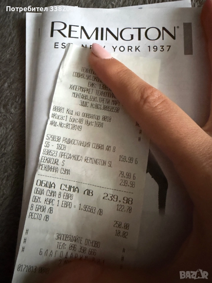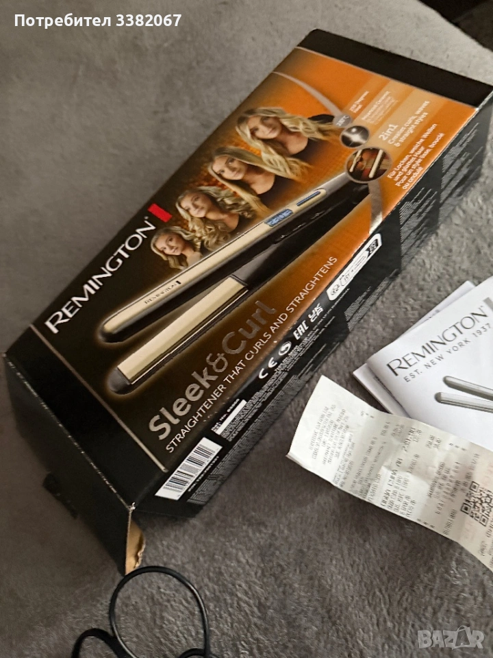 Чисто нова преса за коса на Remington. Използвана няколко пъти. Без забележки. Има касова бележка в кутията. 5 години гаранция има.