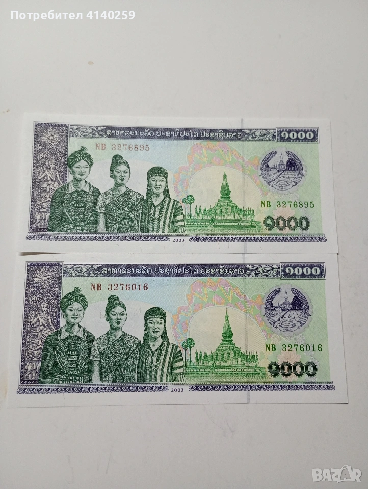ЛАОС БАНКНОТИ 1000 КИПА 2003 Г СЪСТОЯНИЕ НОВО ЦЕНА ЗА 2 БРОЯ ПОЛУЧАВАТЕ СНИМАНИТЕ БАНКНОТИ РАЗГЛЕДАЙТЕ ДРУГИТЕ МИ ОБЯВИ ДА КОМБИНИРАТЕ ДОСТАВКА ЕКОНТ ЗА ВАРНА ЛИЧНО