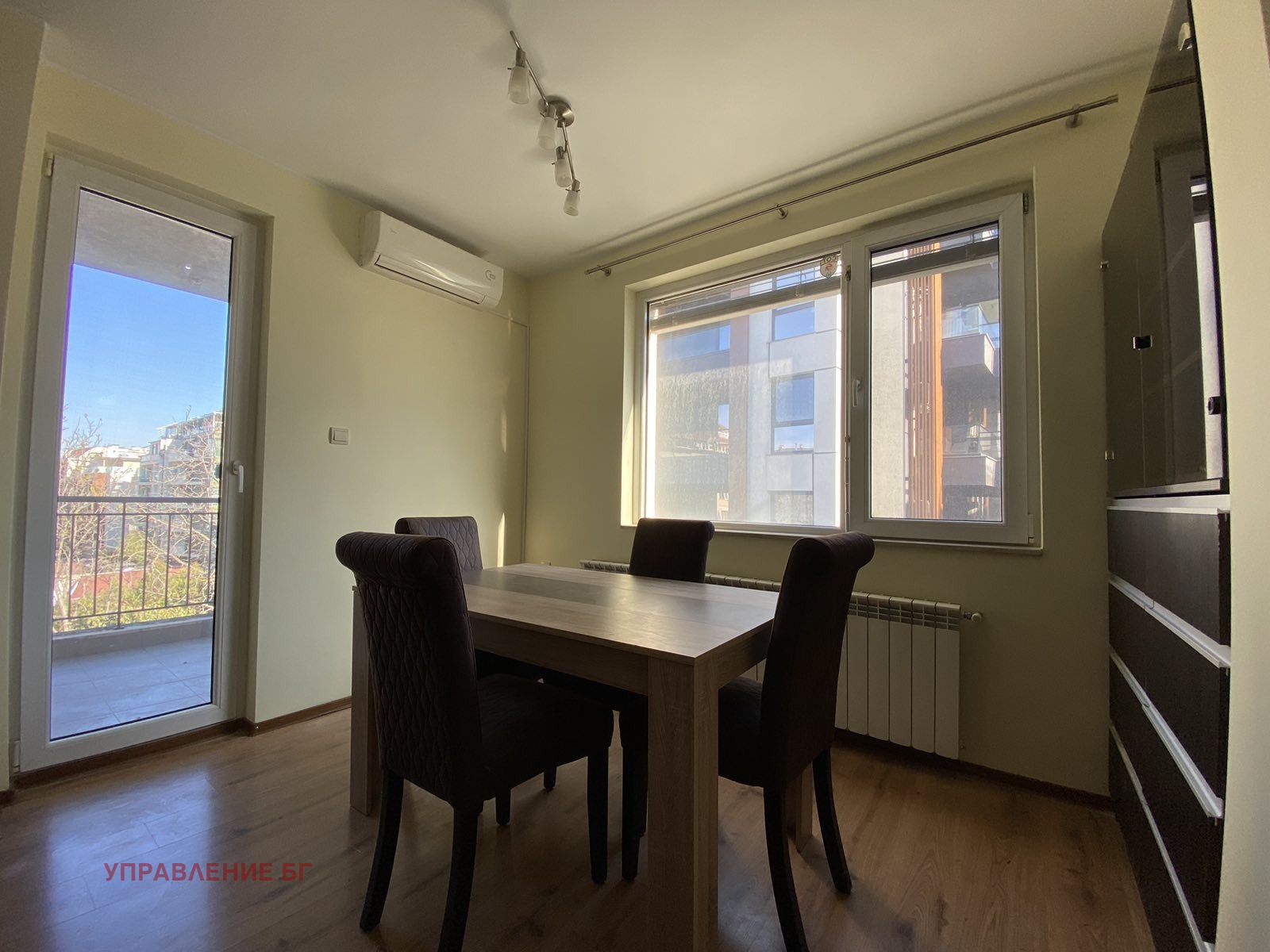 Отоплението е на газ и климатици.