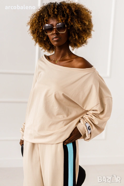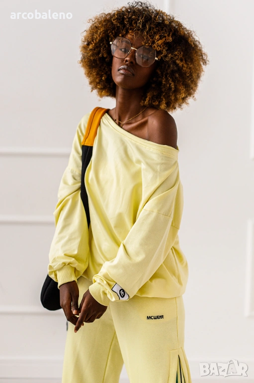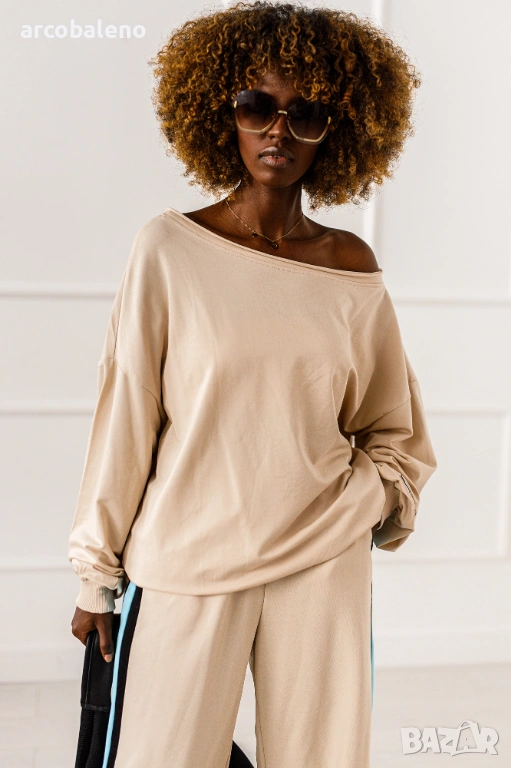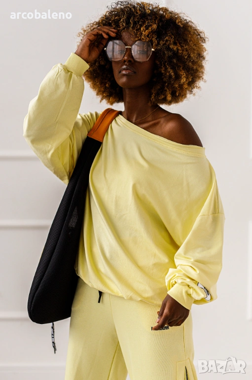 Този дамски суитшърт с диагонална кройка е изработен от мека, удобна плетка. Той е перфектната основа за разнообразни стилове. Предлага се в няколко цвята.