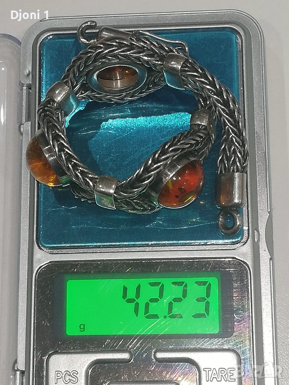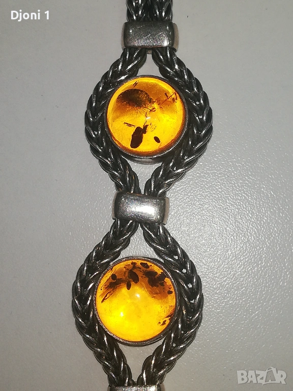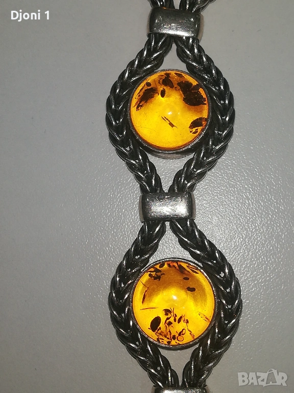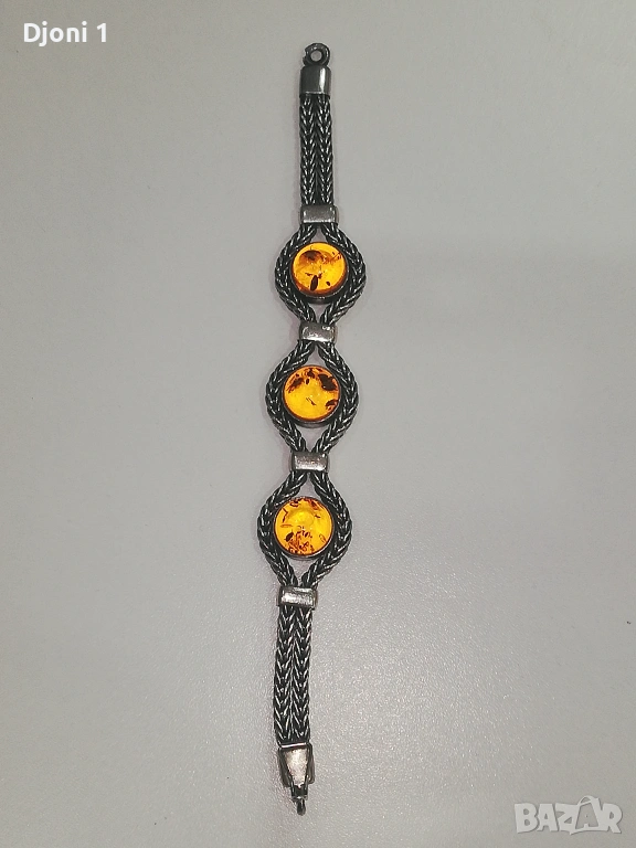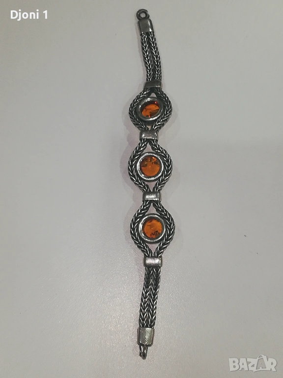 Винтидж сребърна гривна с кехлибар → Обява 53607115